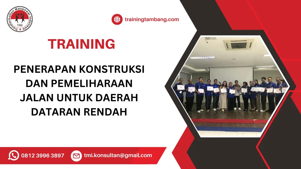 Training konstruksi jalan daerah dataran rendah ini fokus pada penerapan teknik konstruksi dan metode pemeliharaan jalan yang efektif khusus untuk daerah dataran rendah, dengan mempertimbangkan tantangan lingkungan dan kondisi tanah. Program memberikan pengetahuan praktis serta solusi teknis dalam pembangunan dan perawatan jalan agar tahan lama dan aman digunakan. Peserta akan mendapatkan pemahaman mendalam tentang teknologi, material, dan metode yang tepat guna menjamin kualitas dan kelangsungan infrastruktur jalan di wilayah dataran rendah.